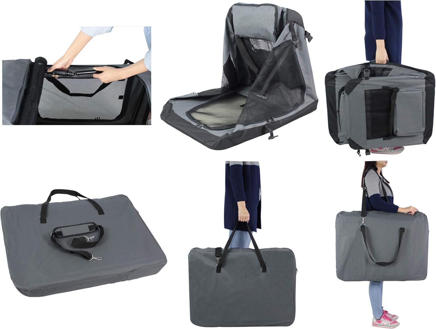 De krat wordt geleverd met een gratis draagtas en fleece bed. De krat heeft een handvat en handbanden, terwijl de draagtas zowel handbanden met handbanden als een verstelbare gewatteerde schouderband heeft, die veel draagopties biedt. De krat kan worden gevouwen tot een hoogte van slechts 3 centimeter, waardoor het gemakkelijk te vervoeren en op te slaan,