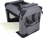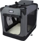 Elitefield 3-deurs vouwen zachte hondenkrat met draagtas en fleece bed (2 jaar garantie), binnen- en buiten huisdier thuis (42 “l x 28” w x 32 “h, grijs)