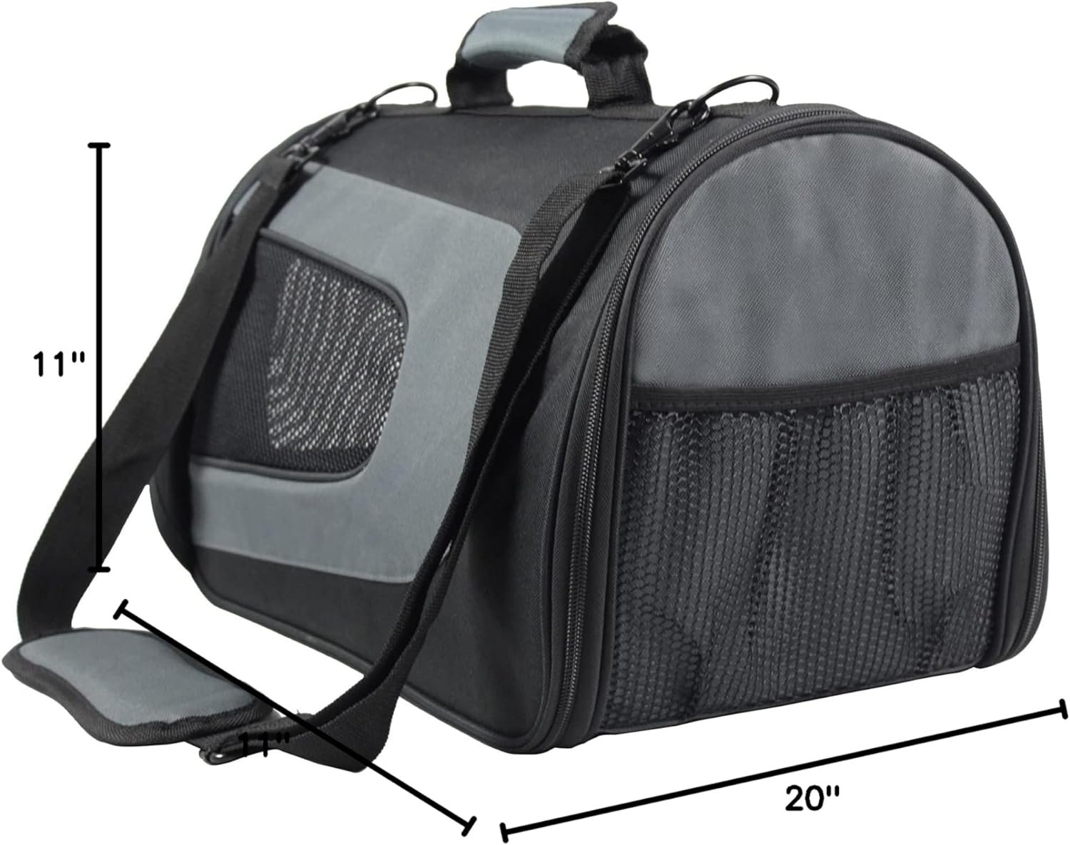 Elitefield Deluxe Soft Pet Carrier (3 jaar garantie, goedgekeurd luchtvaartmaatschappij), meerdere maten en kleuren beschikbaar (20 “L x 11” W x 11 “H, zwart+grijs)