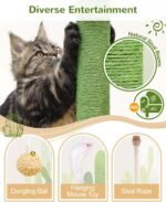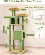F61C Cactus Cat Tower voor binnenkatten, 61-inch schattige lange cactus kat Tower Tower voor volwassen katten kittens met krassende palen, 2 kattencondos, 2 top zitstokken en bungelende bal