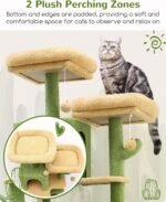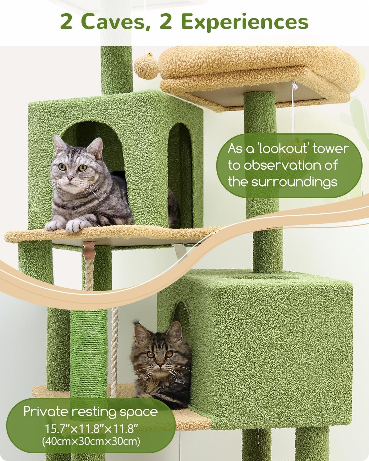 Lang en ruim: staande op 61 inches, heeft deze cactuskattenboom twee topplatforms en twee gezellige kattengrotten, die je katachtige vrienden overvloedige ruimte bieden om te klimmen, te verkennen en te ontspannen
