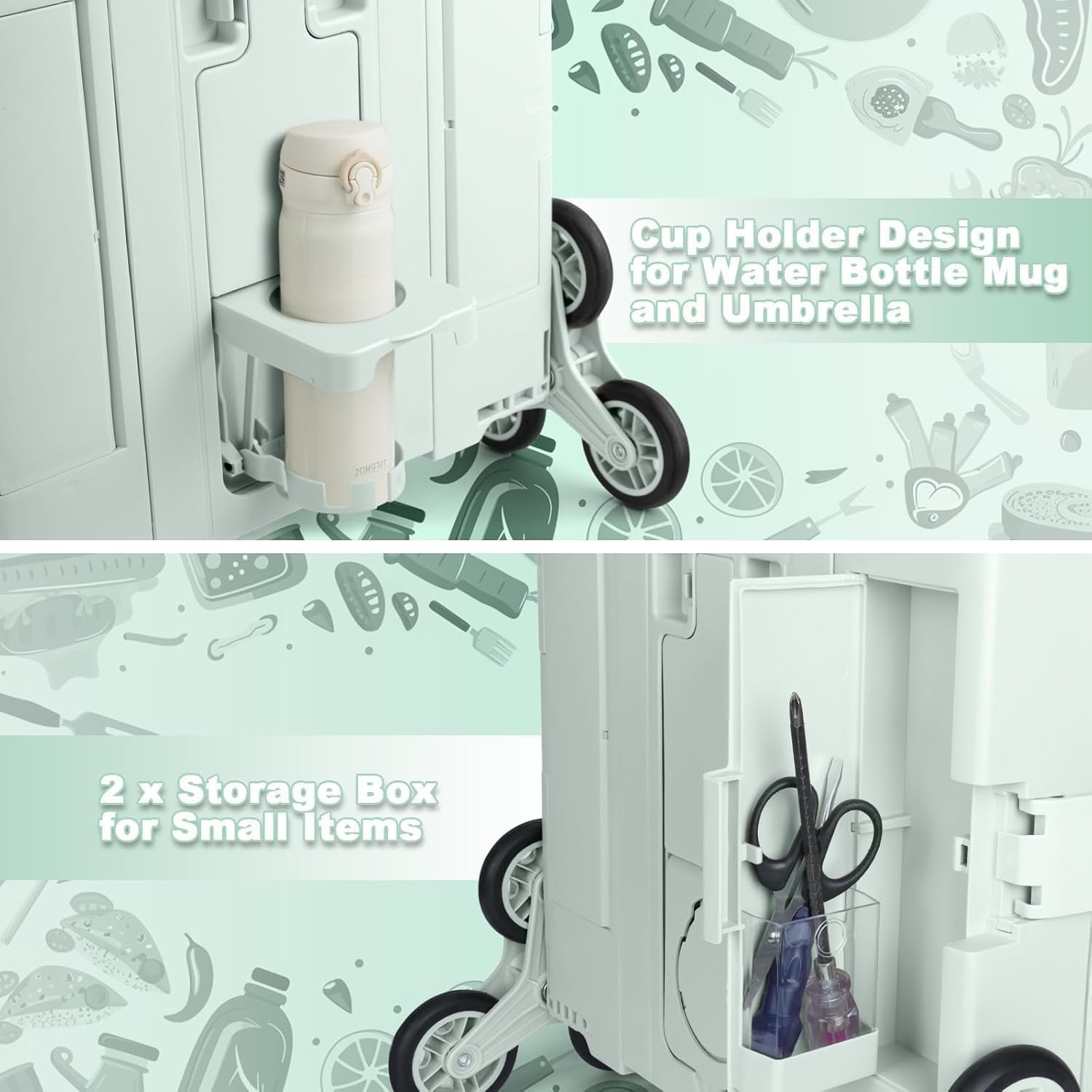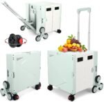 Felicon vouwen klimmerhulpprogramma -karrolkibrate draagtas op roteren wielen met verstelbare handgreep verborgen deksel bekerhouder opslagbak voor lerarenkantoorbestand Moving Shop Travel Laundry Laundry Grocery (groen wit)