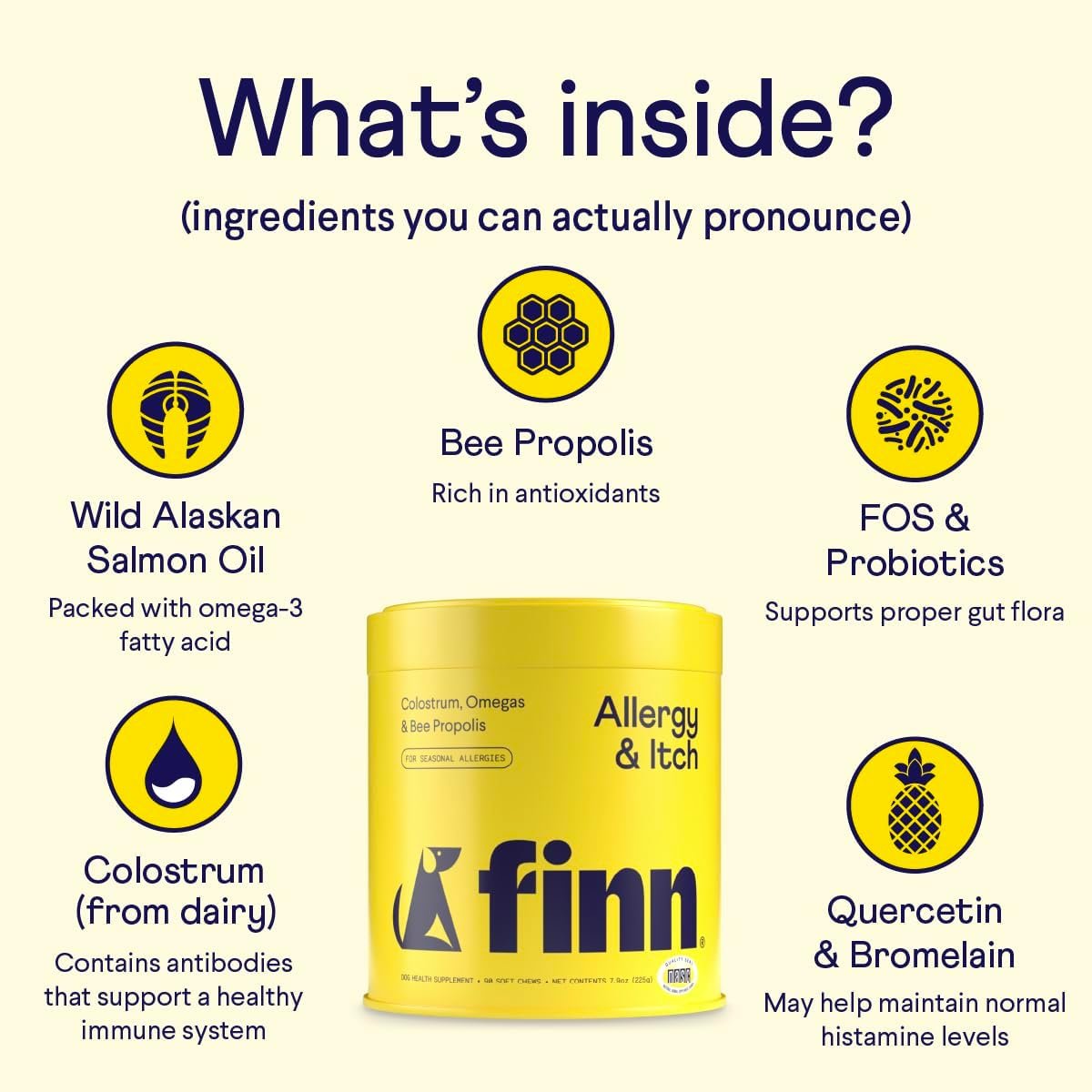 Finn Allergy & Itch for Dogs | Allergie, jeukende huid en immuunondersteuning met bijen propolis + probiotica | 90 zachte kauwen