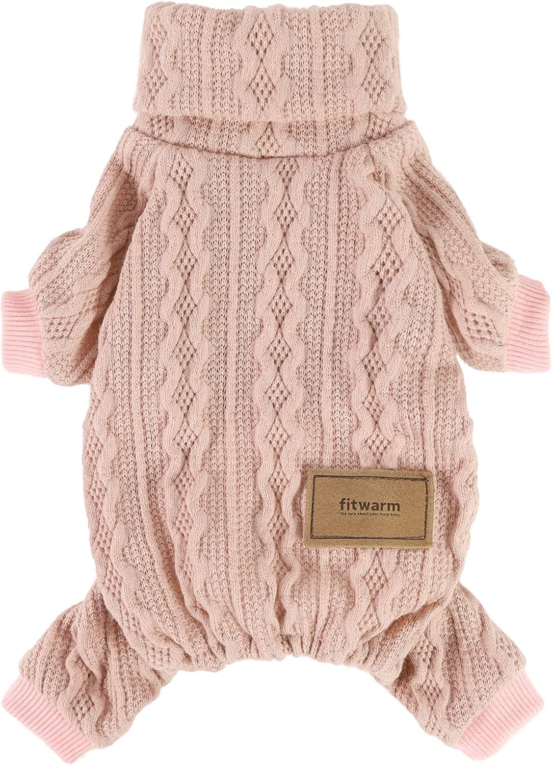 Fitwarm gebreide hondentruien, Turtleneck Pet Pyjama’s, Dog Winterkleding voor kleine honden meisje, kattenkleding, babyroze, klein