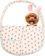 Flower Pet Sling Carrier voor kleine honden en katten, ademende katoenen katten drager Purse, bloemenprint puppy tas 3-10 lbs, handvrije reiskist kat sling, geschenken voor huisdier moedermeisjes (wit, klein