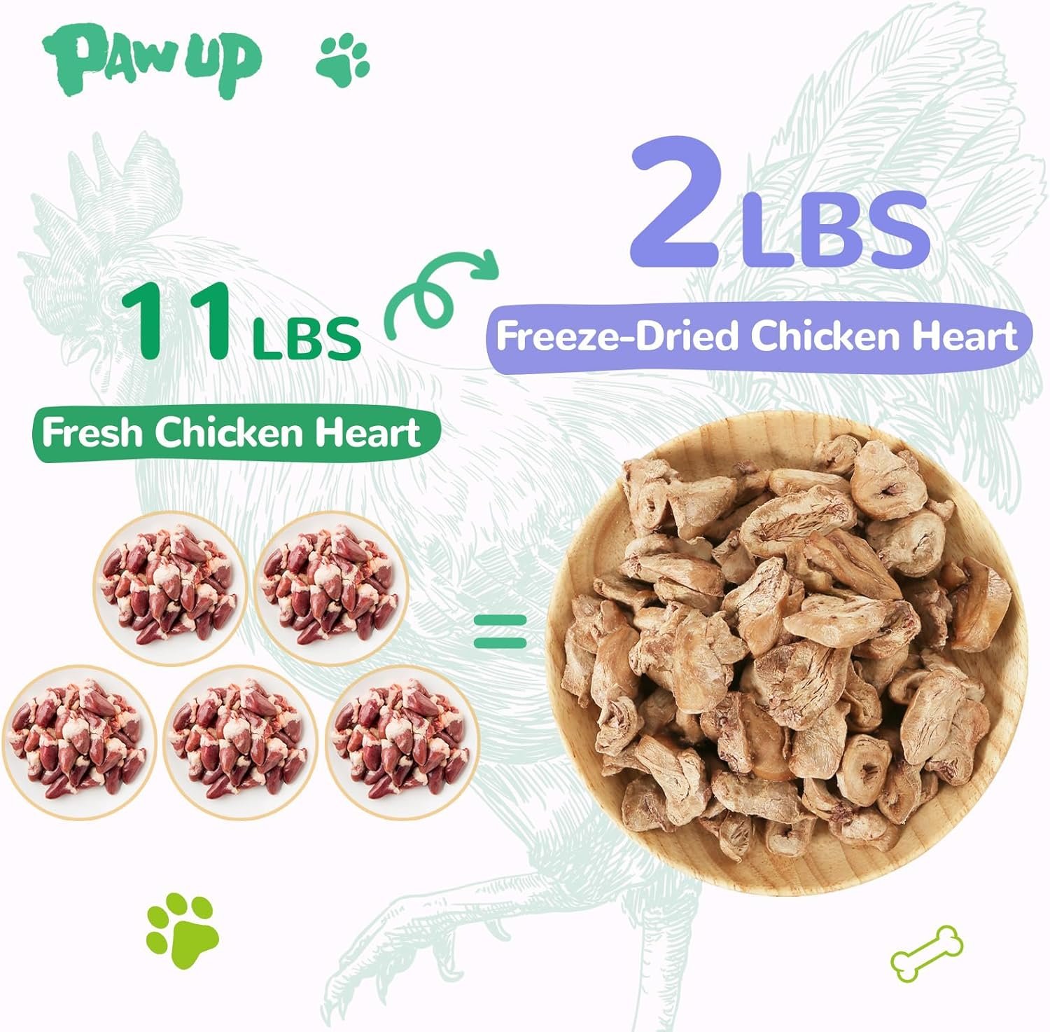 Puur en natuurlijk: Pawup’s gevriesdroogde kippenhart Pet-traktaties zijn vrij van kunstmatige additieven, rawhide, graan en gluten, waardoor een pure en gezonde snackoptie voor uw geliefde huisdieren wordt gewaarborgd. Trakteer uw honden, katten op een gezonde en natuurlijke snack zonder kunstmatige ingrediënten
