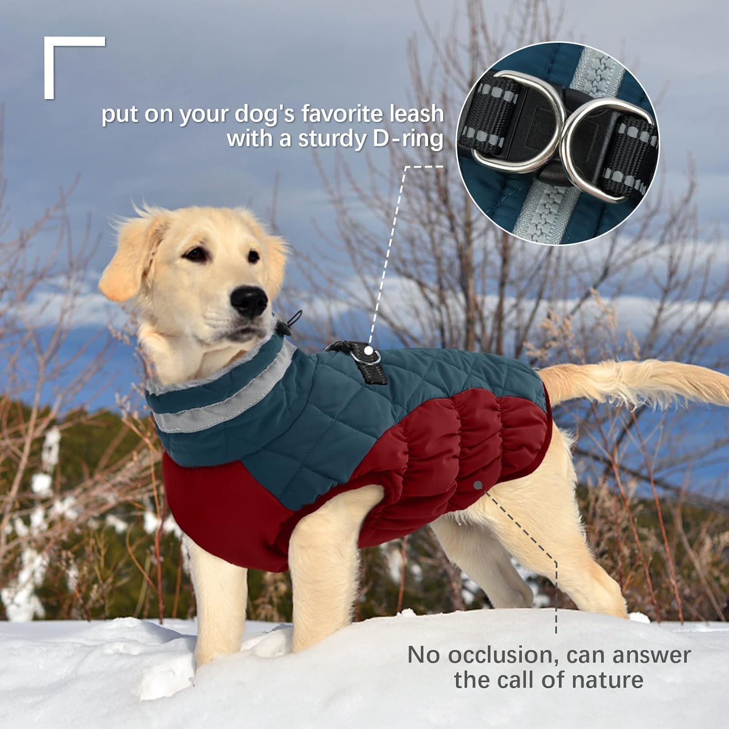 Verdikte bescherming: winterhonden jas dikke kraag, zijdezacht en zacht aanraking, donzig en warm gevoel, de hondenjacks Turtleneck Design kan de nek van de hond beschermen bij koud weer. Er zijn verstelbare elastische riemen op kraag RO voorkomen wind en sneeuw