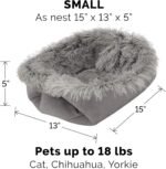 Furhaven zelfverwarmend kattenbed voor binnenkatten, 4-beden-in-1 & wasbaar-pluche lange faux bont cabriolet cuddler-grijs, klein