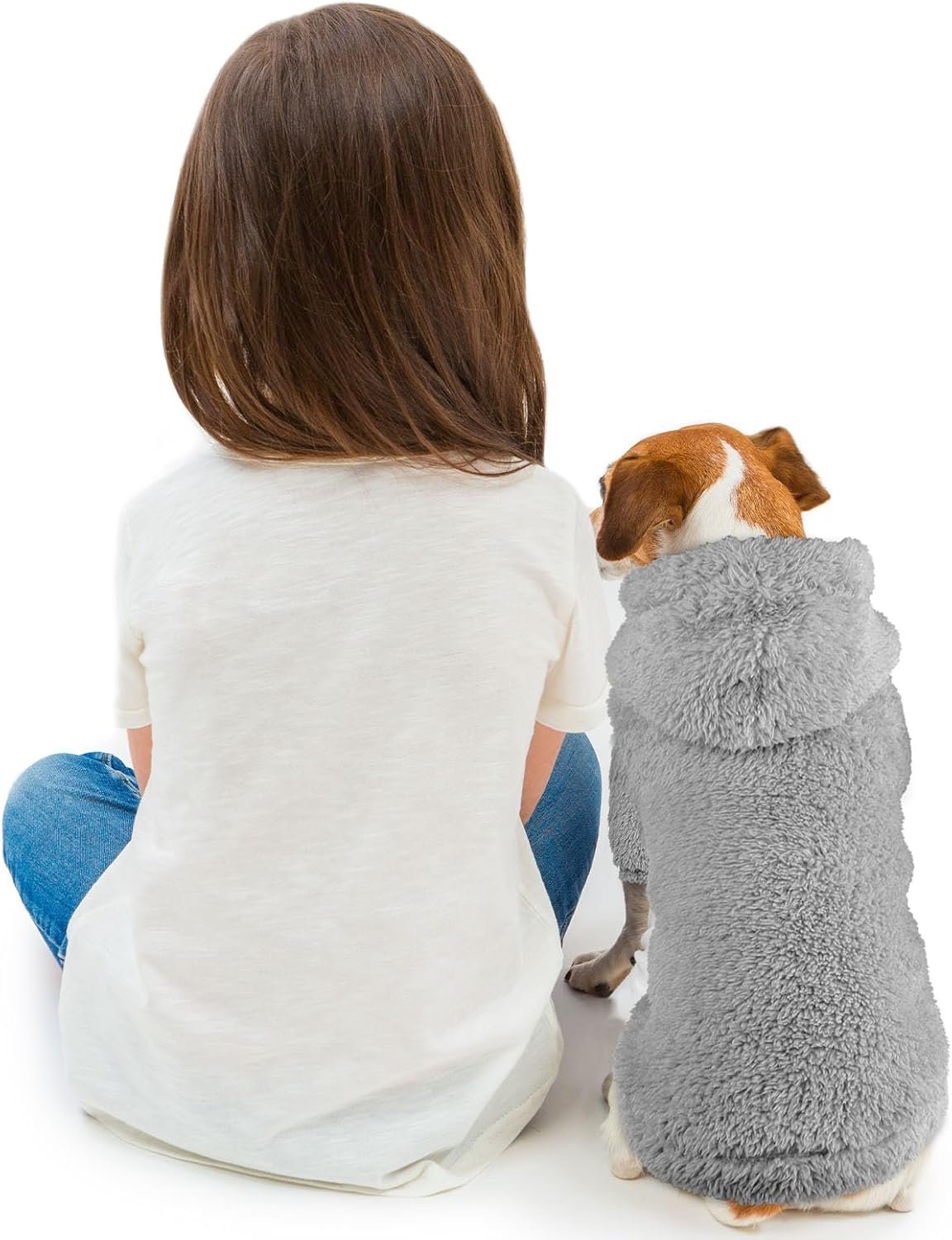 Fuzzy Dog Sweaters voor kleine honden Honden Hoodie Zachte dubbelzijdige pluche fleece hondentrui Dog Kleding Dog Coats Hond Hoodie Sherpa Hooded Sweatshirt (Grey-S)