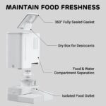 Geavanceerde frisheid kenmerken: geniet van vier lagen voedselbehoud, waaronder een 360 ° verzegelde siliconenring om vocht buiten te houden, een vochtbestendige opslagcontainer, afzonderlijke compartimenten voor voedsel en water, en een verborgen voedseluitgang die automatisch sluit na het verspreiden. Dit zorgt voor optimale versheid en ongediertebescherming.