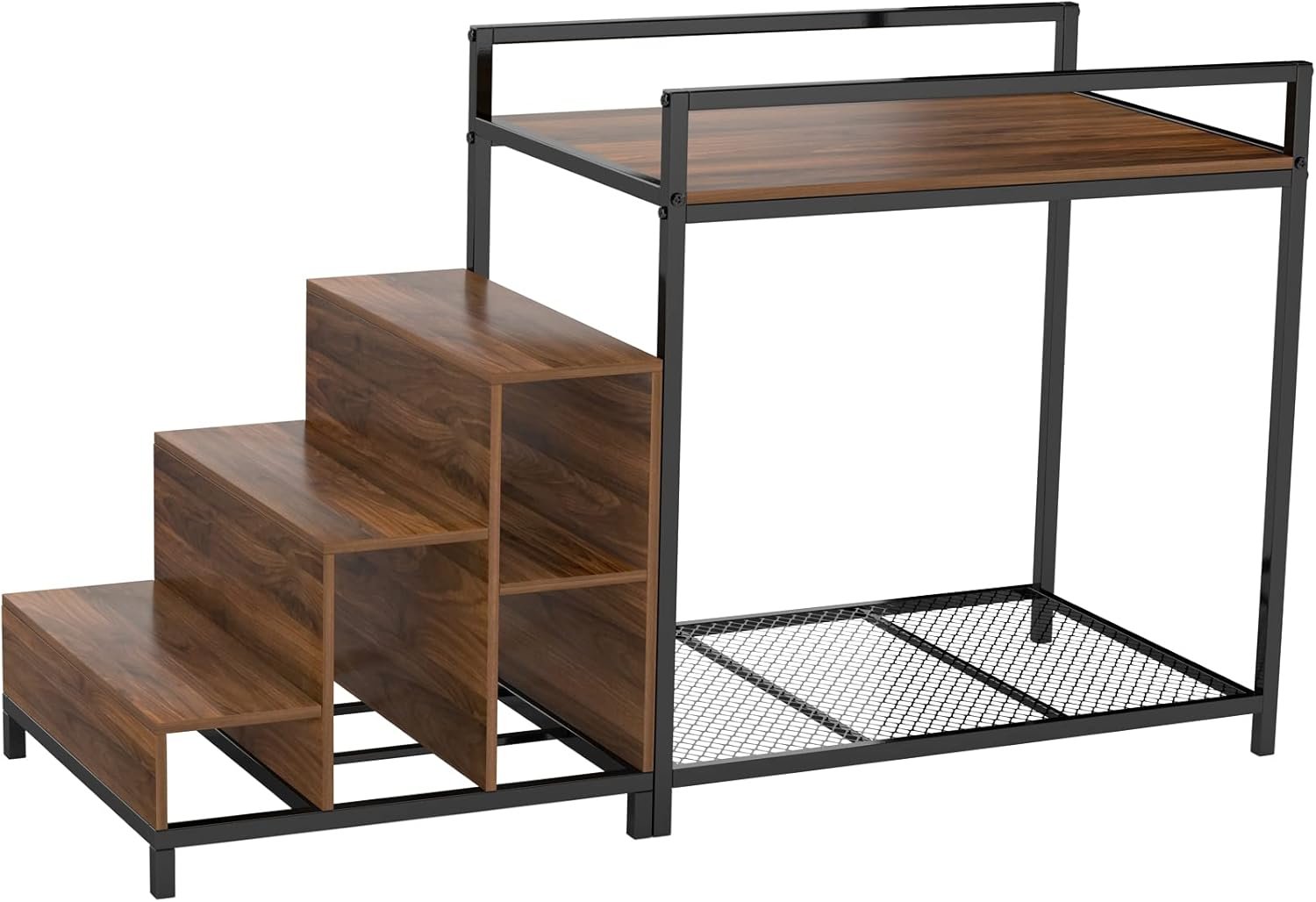 Meerdere niveaus voor opslag of huisdieren: de stapelbedden van de honden hebben een bovenste slaapruimte en een bodem rustruimte, waardoor maximaal twee huisdieren het bed tegelijk kunnen gebruiken. Het product bestaat uit twee delen: u kunt het bed of de trap afzonderlijk gebruiken. De trapruimte is uitgerust met extra opbergladen voor kleine huisdierenbenodigdheden