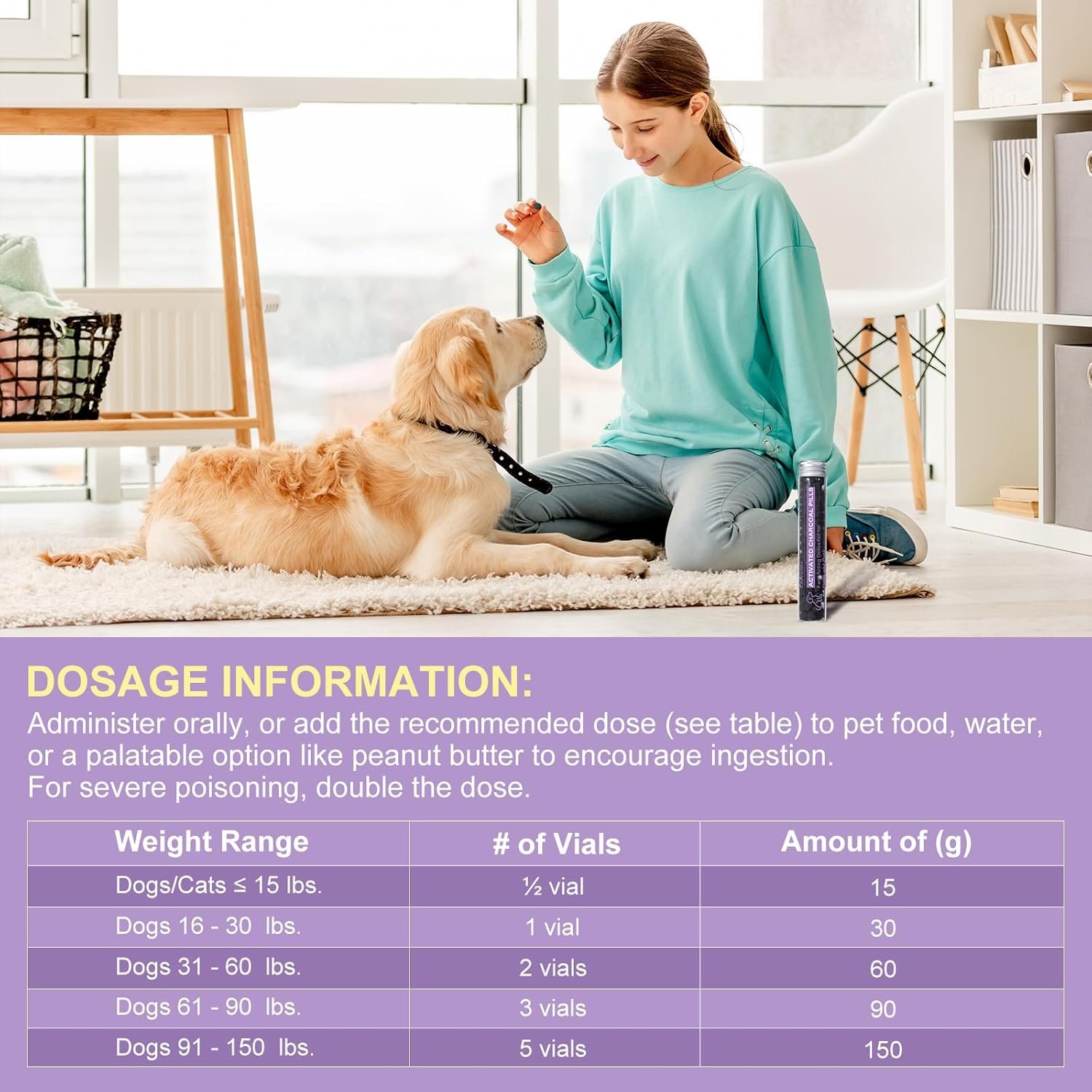 Onze door dierenartsen aanbevolen actieve houtskool voor honden en katten is een snelwerkende, levensreddende oplossing voor noodsituaties. Houd onze geactiveerde houtskoolhonden in de EHBO-kit van uw huisdier voor bescherming onderweg-of u nu kampeert, wandelen, reizen of gewoon thuis.