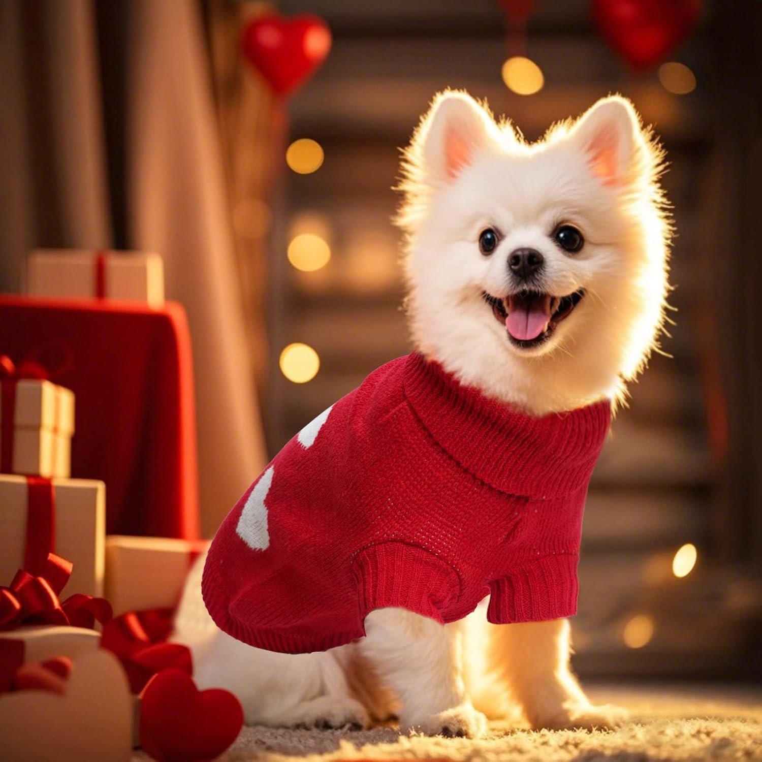 Gebreide hondentrui hart puppy trui winter warme pullover coltruien gebreide kleren voor huisdieren voor kleine honden en katten (rood, klein)