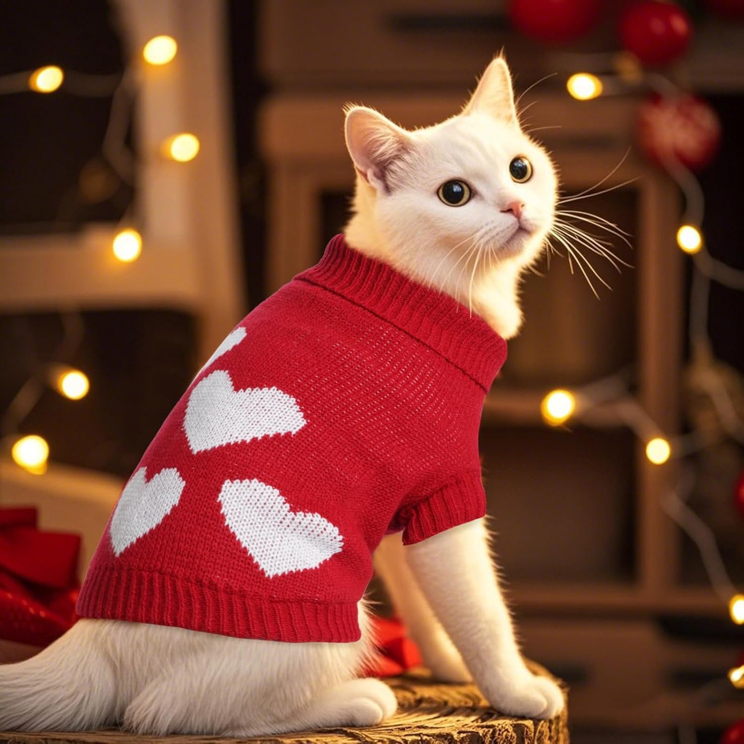 Valentijns hartontwerp: klassieke kabelbreide kleding met hartvorm is gemakkelijk te dragen en af ​​te trekken, katten en hondenhek en borst te beschermen, maak je huisdieren mooi en schattig in kraaien.
