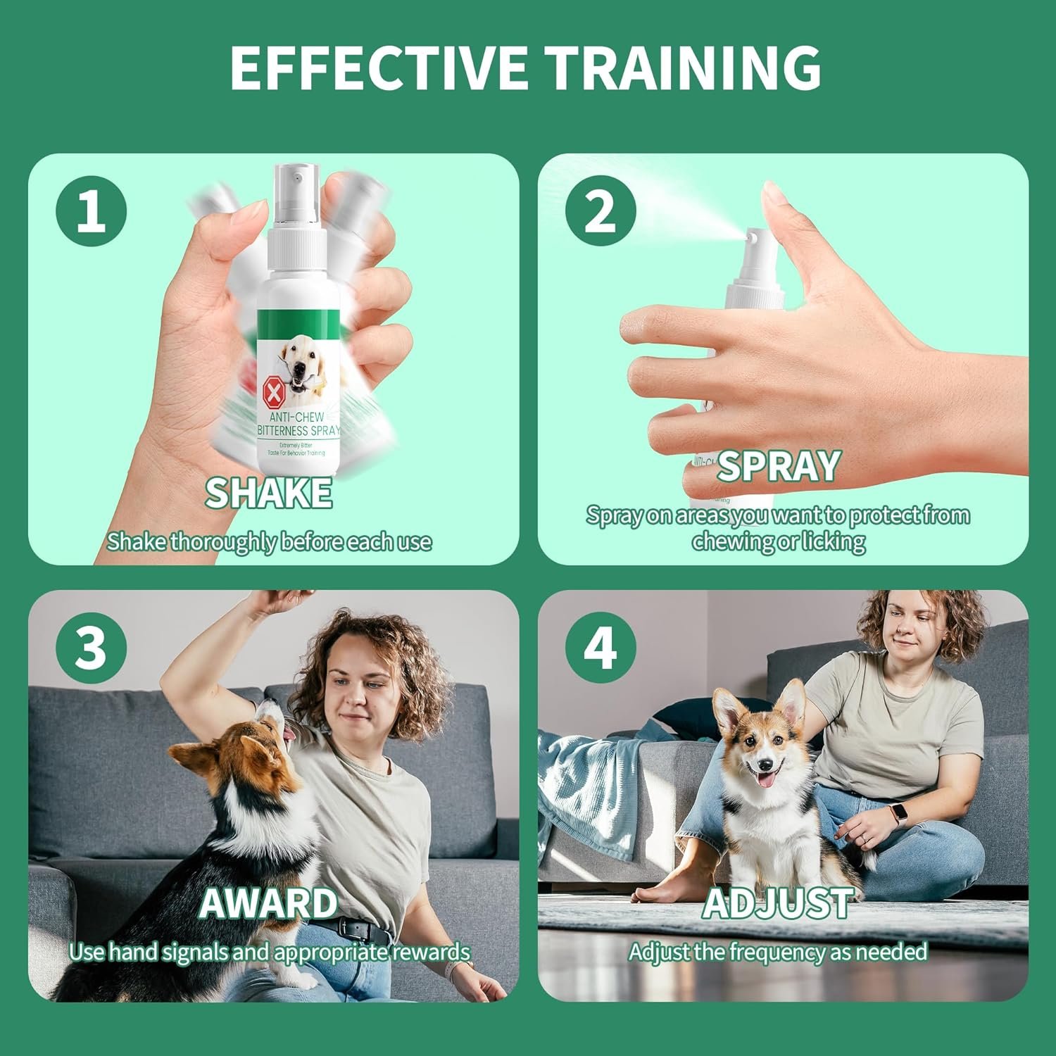 Gemakkelijk te gebruiken en langdurig: spuit gewoon onze anti-in-chewing spray op oppervlakken om te voorkomen dat huisdieren deze meubels, tapijten of andere items krabben of krabben. Onze langdurige formule elimineert de behoefte aan frequent spuiten. Gebruik 3-4 keer per dag voor de eerste maand, bekijk het gedrag van uw hond en verandert vervolgens geleidelijk het aantal sprays indien nodig.