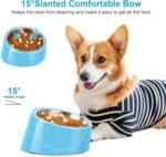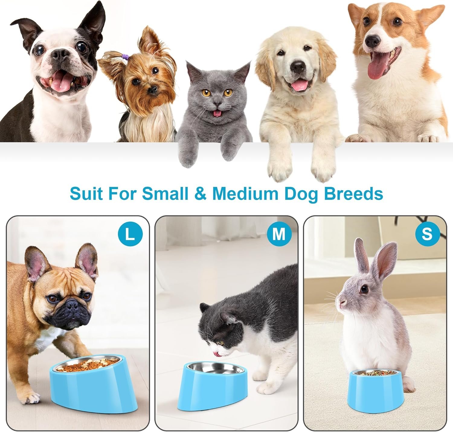 15 ° schuine hondenkom: deze gekantelde hondenvoerkom is ontworpen om voedsel naar het midden te kanaliseren, waardoor morsen wordt verminderd met het enigszins hellende oppervlak. Het is vooral geschikt voor katten en honden met een platte gezicht, waardoor het eten gemakkelijker en schoner wordt.
