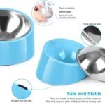 Stabiele zware stand: de standaard is robuust en zwaar, met rubberen grepen op de bodem om de stabiliteit te verbeteren. Het is ontworpen om voor huisdieren moeilijk te zijn om te vernietigen en het hellende oppervlak helpt voorkomen dat voedsel morst.