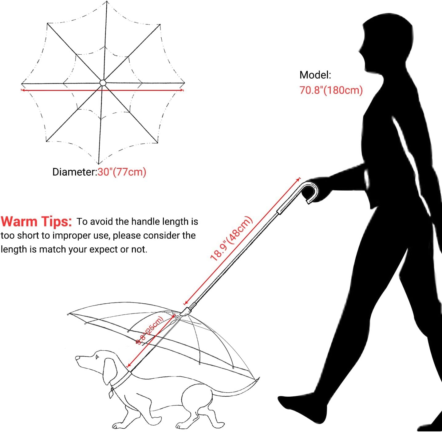 Paraplu voor honden onder de 12 pond (Chihuahua, Pomeranian, Yorkie, enz.), Deze waterdichte hondenkaraplu heeft een 29,5 “brede luifel om huisdieren volledig te beschermen tegen regen, sneeuw en wind. De ingebouwde intrekbare as zorgt voor gemakkelijke hoogte voor optimale dekking.