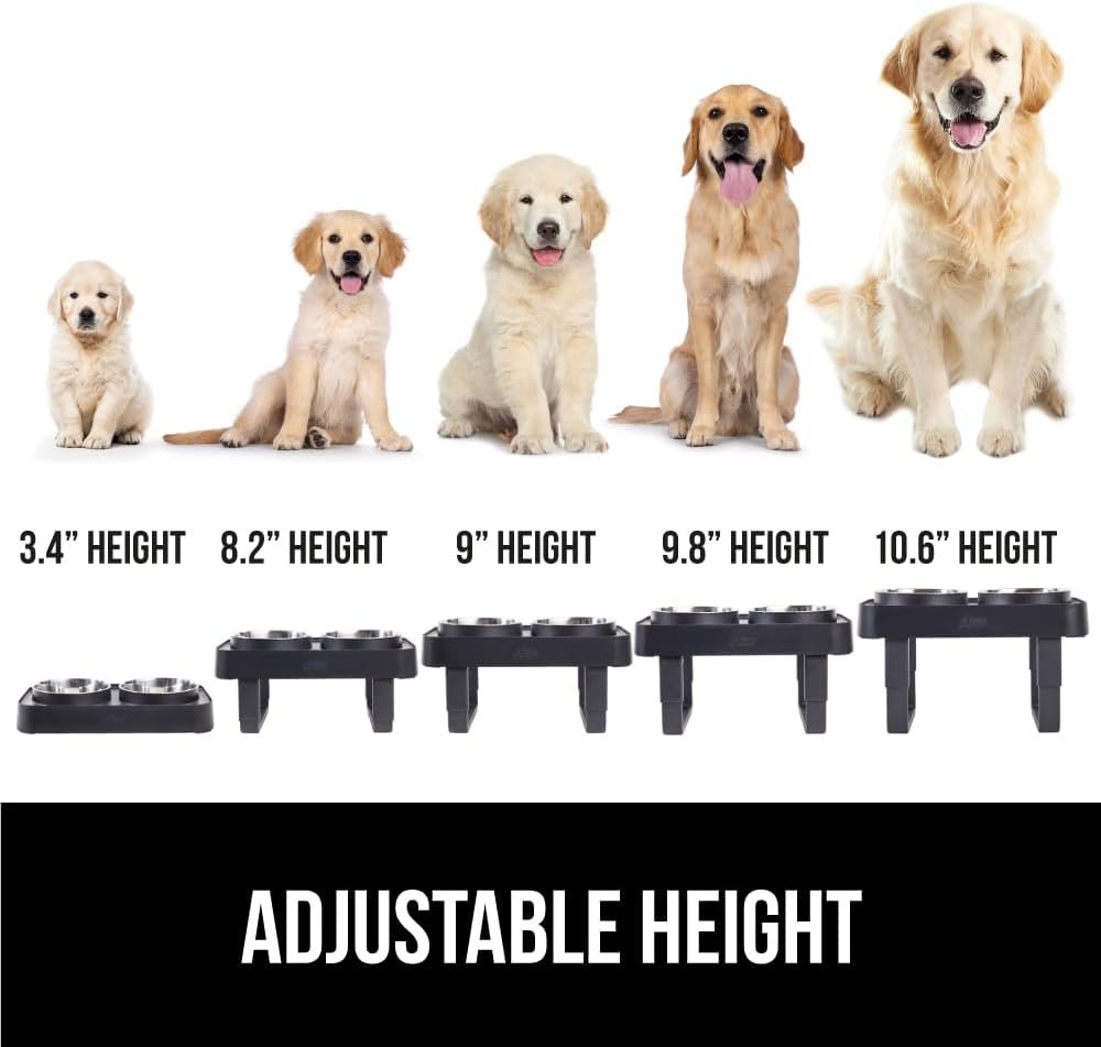 Gorilla -grip verhoogde hondenkommen staan, 6 kopje roestvrijstalen voedselkom van 2, 5 hoogte verstelbaar verhoogd voedingsstation voor puppyhonden en katten met kleine rassen, medium, grote huisdierenvoeder, zwart