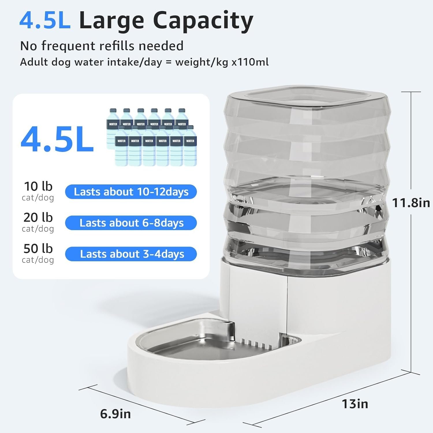 【Meer – 4.5L Dogwaterdispenser】 8.5L PET -waterdispenser, kan 3-23 dagen duren voordat huisdieren volgens hun grootte kunnen drinken. Zelfs als je een week uitgaat, hoef je je geen zorgen te maken over je huisdieren zonder water. Deze huisdierenwaterer blijft uw huisdier van hoogwaardige waterbronnen voorzien, uw stappen bevrijdt en uw reis zorgenvrij maakt.