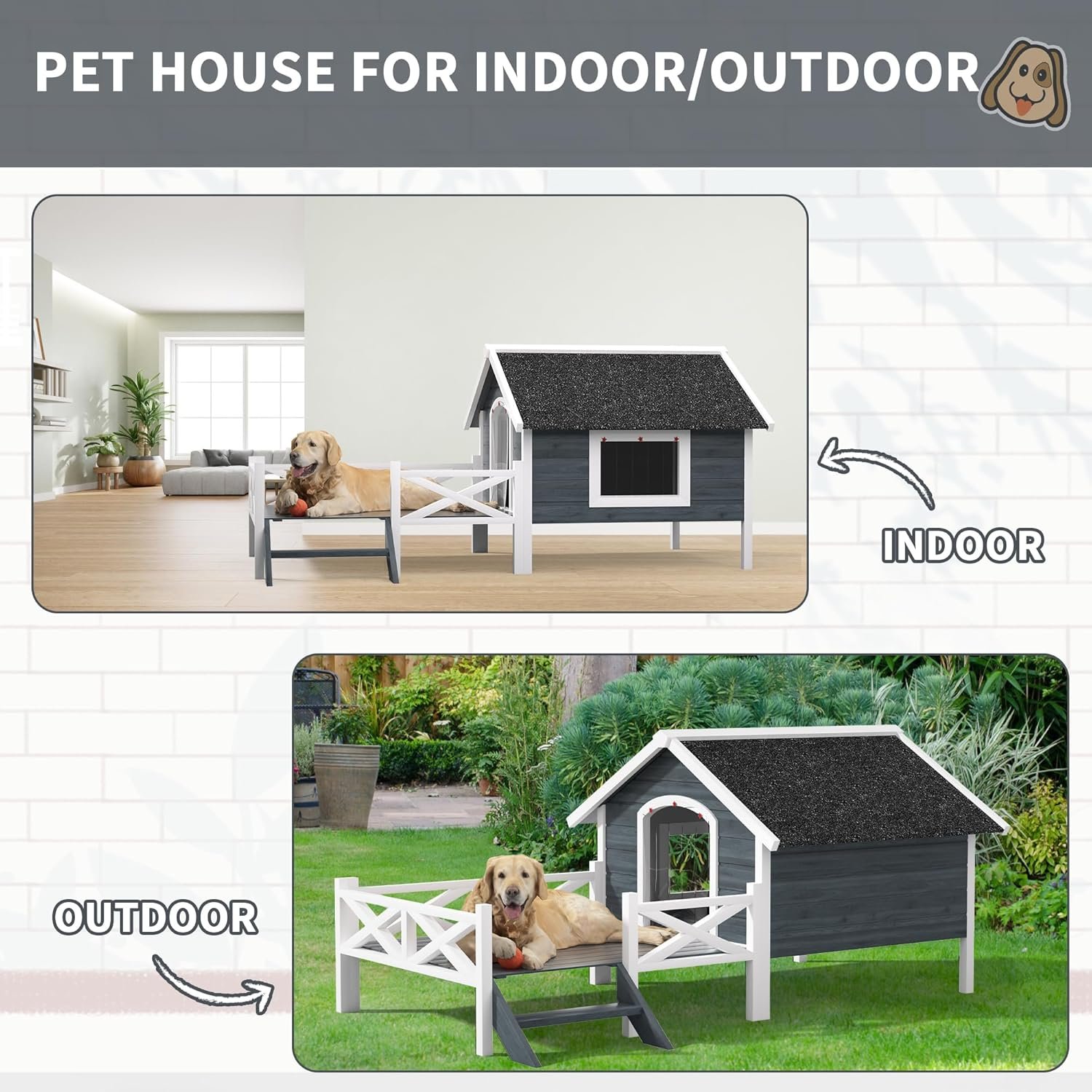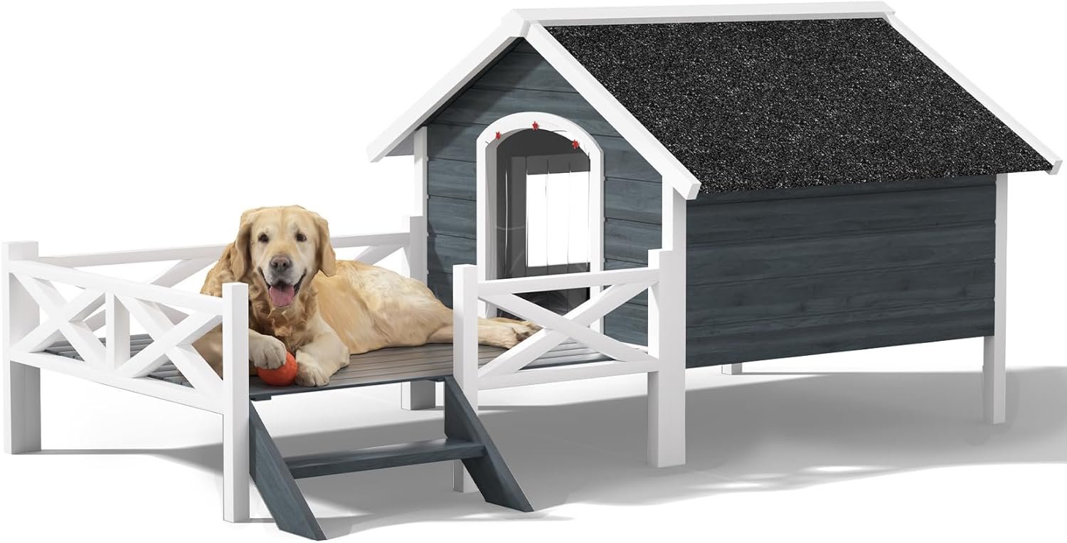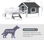 Verhoogd ontwerp voor comfort: ontworpen om in uw achtertuin te worden geplaatst, deze verhoogde hondenkennel houdt uw huisdier veilig tegen vocht en ongedierte. De verhoogde structuur verbetert het comfort, terwijl de ruime veranda een zonovergoten gebied biedt waar uw hond van kan genieten. Uw huisdier zal dol zijn op de frisse lucht en extra ruimte, waardoor dit de perfecte buitenretraite is.