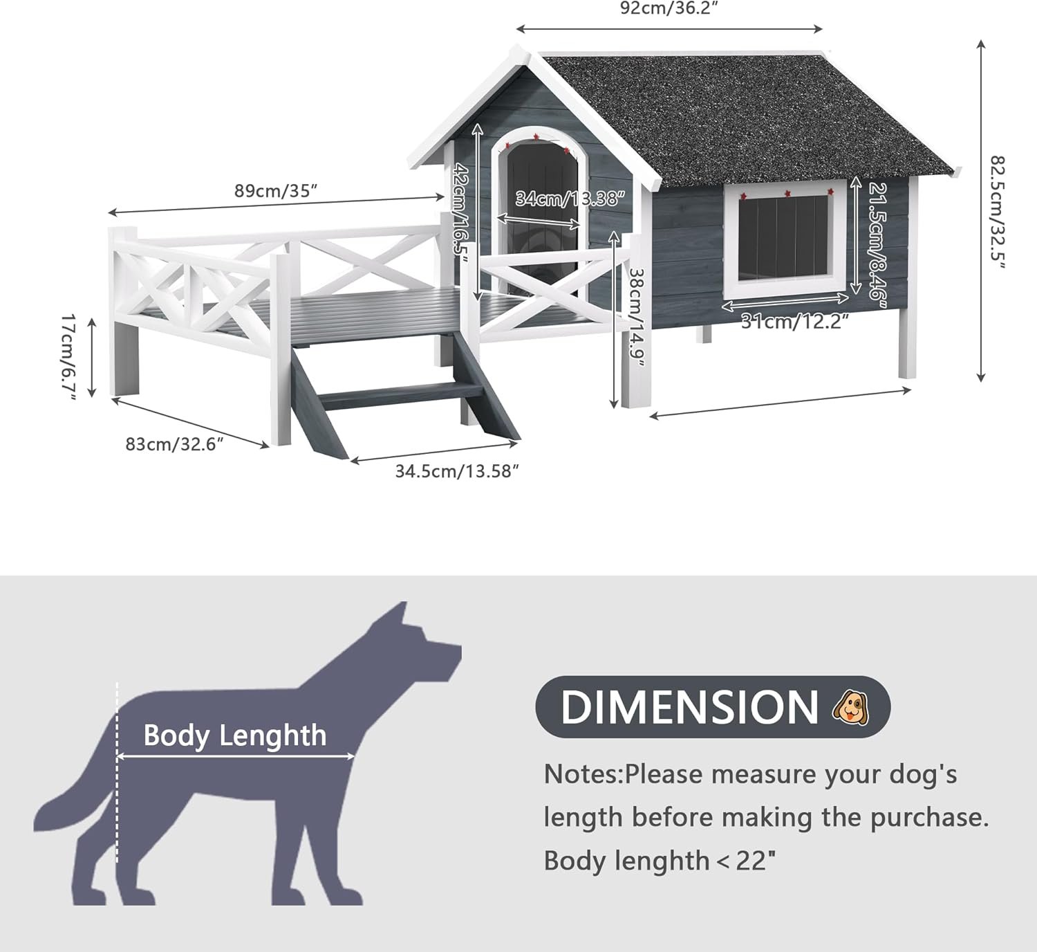 Ruim hondenhuis: dit hondenhuis in de buitenlucht biedt ongeveer 15 m² ruimte voor je harige vriend om te ronddwalen en te ontspannen. Met een royale interne ruimte en een extern balkon heeft uw hond voldoende ruimte om te slapen en te rusten. De brede deur zorgt voor eenvoudige toegang en uitgang, terwijl het zijraam zorgt voor een goede luchtstroom en natuurlijk licht, waardoor u uw geliefde huisdier in de gaten kunt houden.