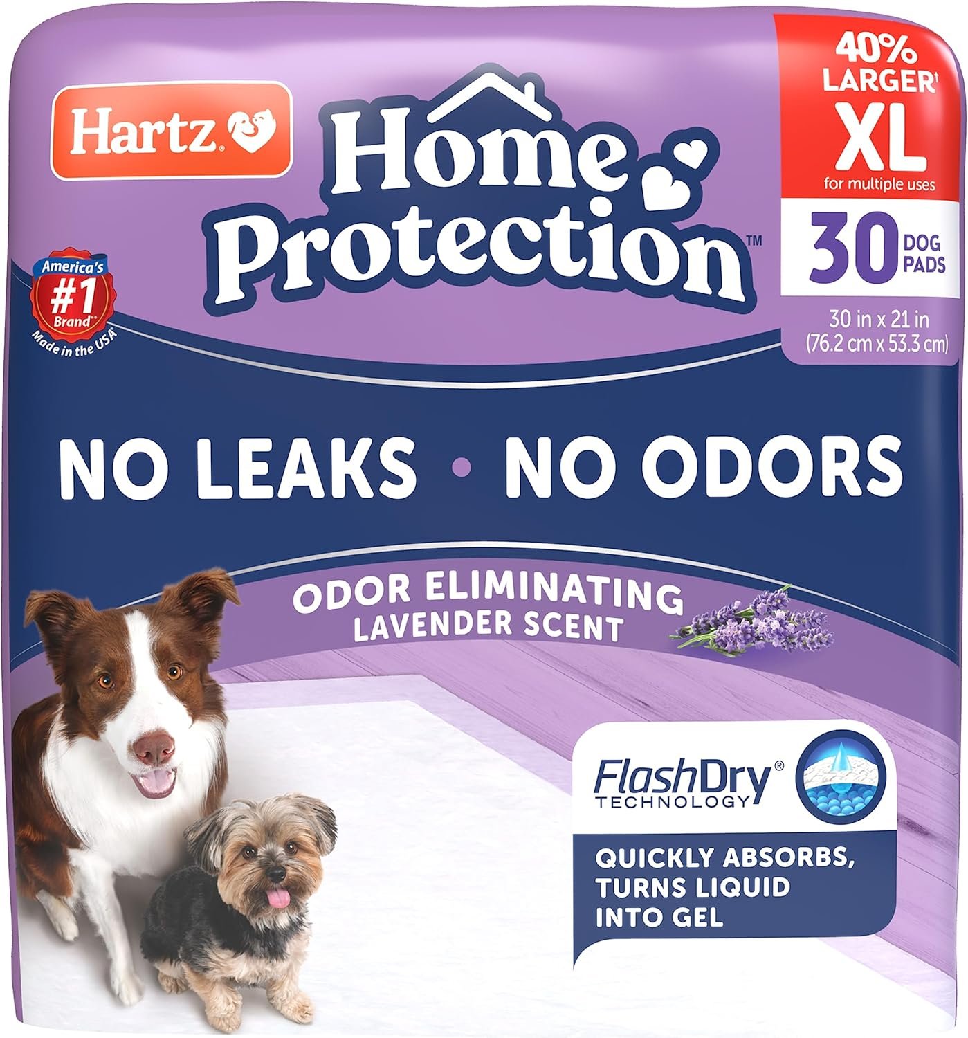 Hartz Home Protection Lavender Geurende hondenblokken, XL 30 -telling, superabsorberend & niet lekken, geur elimineren