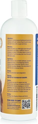 Aloë & havermoutformule – Verlicht een droge, jeukende huid terwijl de jas en de vacht schoon, glanzend en zijdezacht achterblijven. Havermout heeft een natuurlijk rustgevend middel en is geweldig voor hotspots en andere huidaandoeningen. Aloë Vera Gel is een natuurlijke ingrediënt voor krachtpatser dat rustgevende verlichting brengt voor droge, jeukende, schilferige huid.