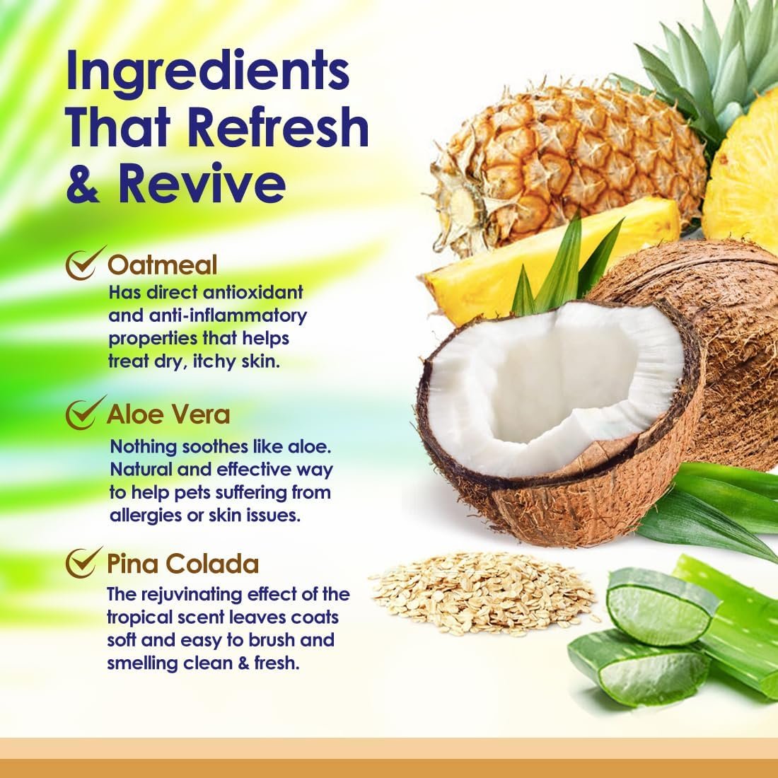 Havermouthondenshampoo met rustgevende aloë vera, gevoelige huidhondenshampoo voor alle huisdieren, met tropische verse pina colada geur, hypoallergene formule biedt verlichting van allergieën en droge jeukende huid
