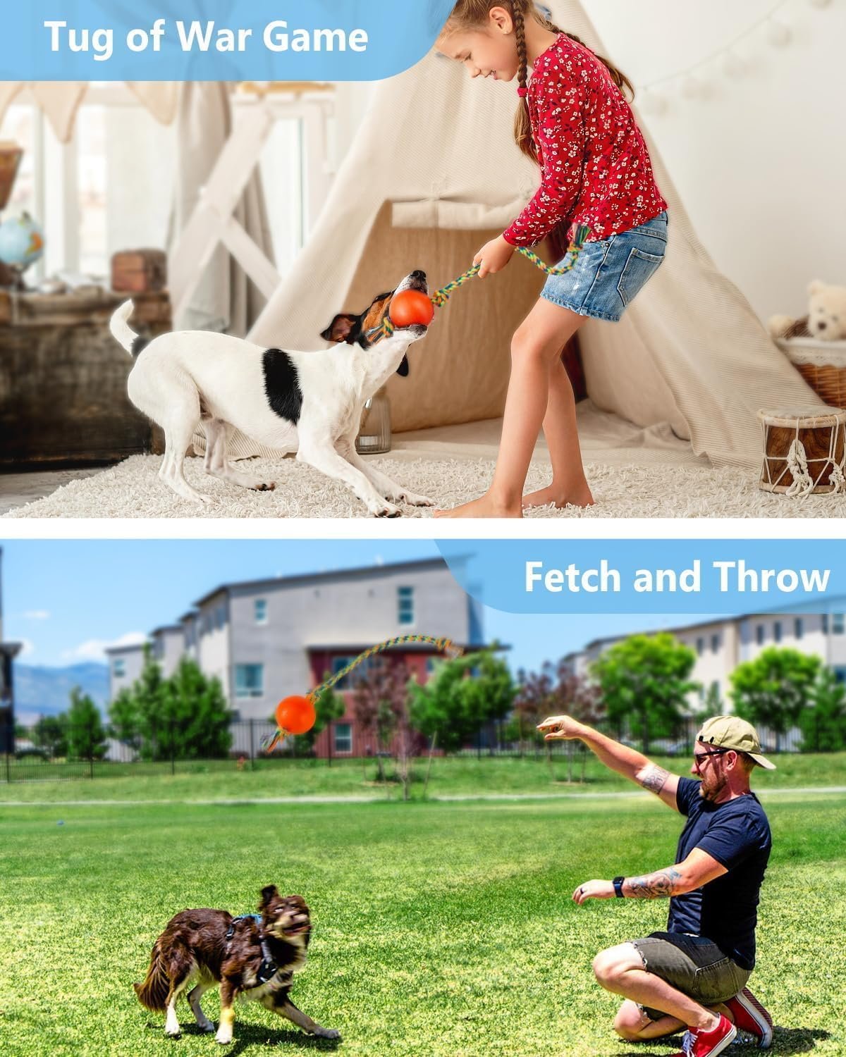Interactief hondenspeelgoed: honden kunnen geen nee zeggen om sleepbootspellen met je te spelen! Dit geknoopte touwspeelgoed is perfect voor het gooien, vangen en trekken tijdens interactief spel of een geweldig kauwspeelgoed voor solo -speeltijd.