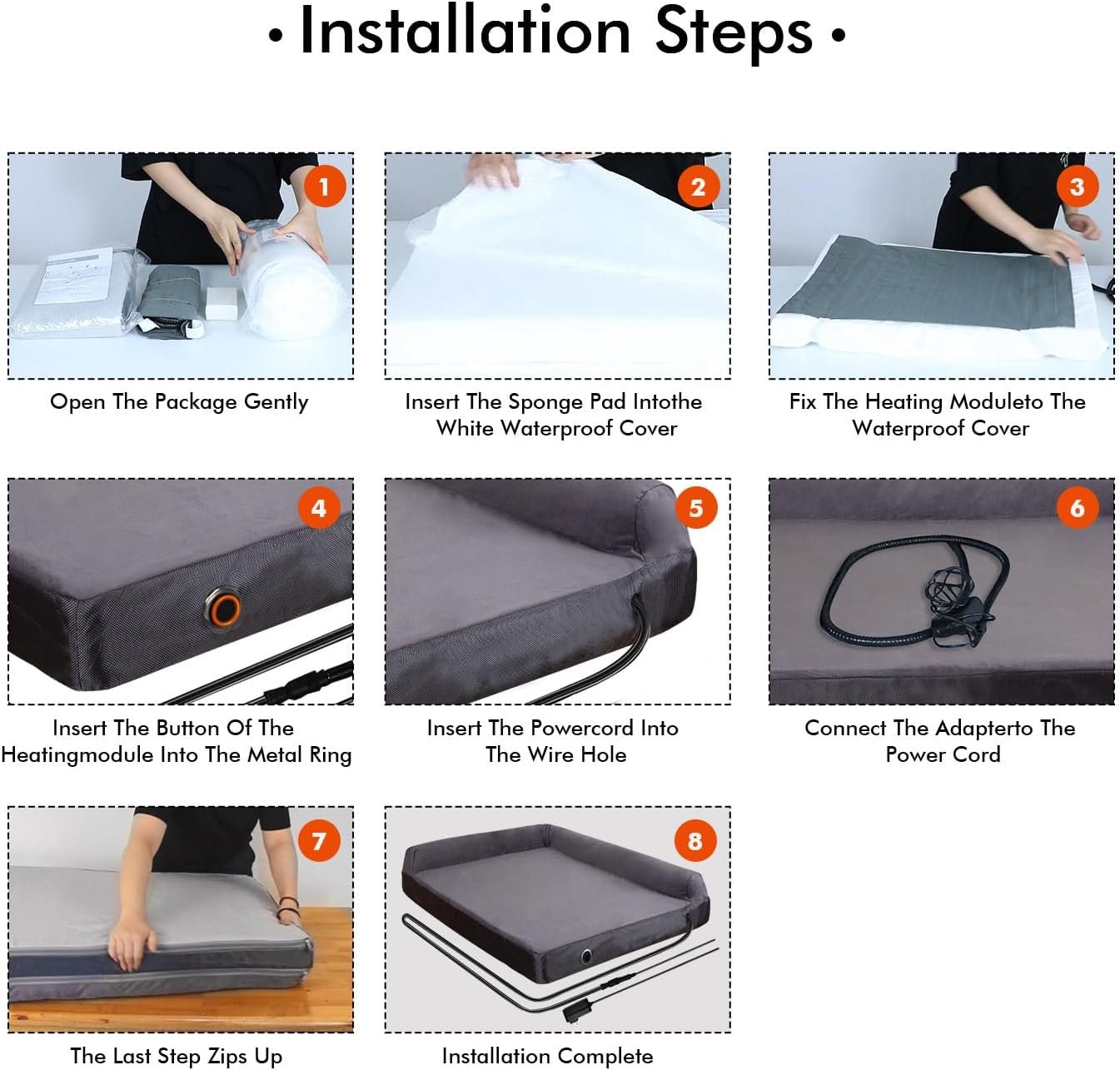 【Verwarmd hondenbed】 Verbeterde verwarmd hondenbed met vergrote verwarmingsoppervlak, met dik en plat geheugenschuim, is de sponsdoekbedekking geïnstalleerd, u hoeft het niet zelf te doen, L-vormige bolsters ondersteunen de kop van Pet Back en heupen die extra ondersteuning bieden, Helpen om de wervelkolom uit te lijnen voor maximaal comfort, het is perfect voor artritis en oudere honden.