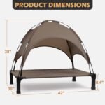 Heeyoo verhoogd hondenbed met luifel, buitenlucht bedbedje bedbedje met verwijderbare schaduwtent, draagbaar verhoogd huisdier koelbed voor honden en katten, bruin