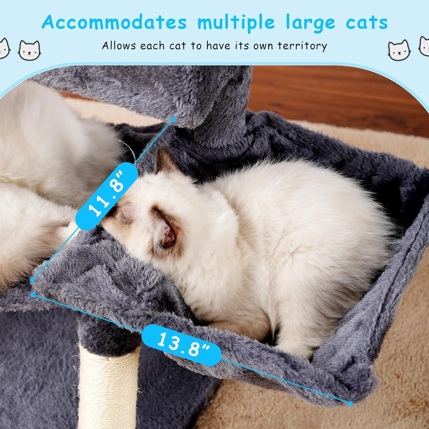 Verhoogde wonen: de top zitstokken van deze kattentoren bieden een verhoogd uitzicht voor uw katten, perfect voor het onderzoeken van hun domein. Met verhoogde randen voor veiligheid zijn deze zitstokken een favoriete plek voor katten om te ontspannen en hun koninkrijk te regeren.