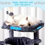 Hey-broer kattenboom, 59 inch kattentoren voor binnenkatten, grote kattencondo met bovenste zitstokken, dubbele mand, blad, hangmatten, pluche moderne meubels krabpalen met meerdere niveaus, rokerig grijs mpj052G