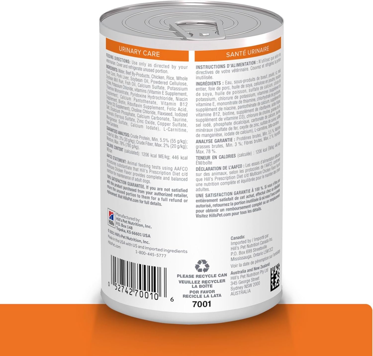 Hill’s recept dieet c/d multicare urinaire zorg kippensmaak ingeblikt hondenvoer is speciaal geformuleerd door de voedingsdeskundigen en dierenartsen van Hill om de urinaire gezondheid van uw hond te ondersteunen