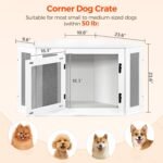 Corner Dog Crate: Deze binnenkist met huisdieren heeft een hoekontwerp dat perfect tegen de muur past, waardoor het gebruik van hoeken in uw huis wordt gemaximaliseerd. Het is ideaal voor kleine woonruimtes en biedt een warm huis voor uw hond