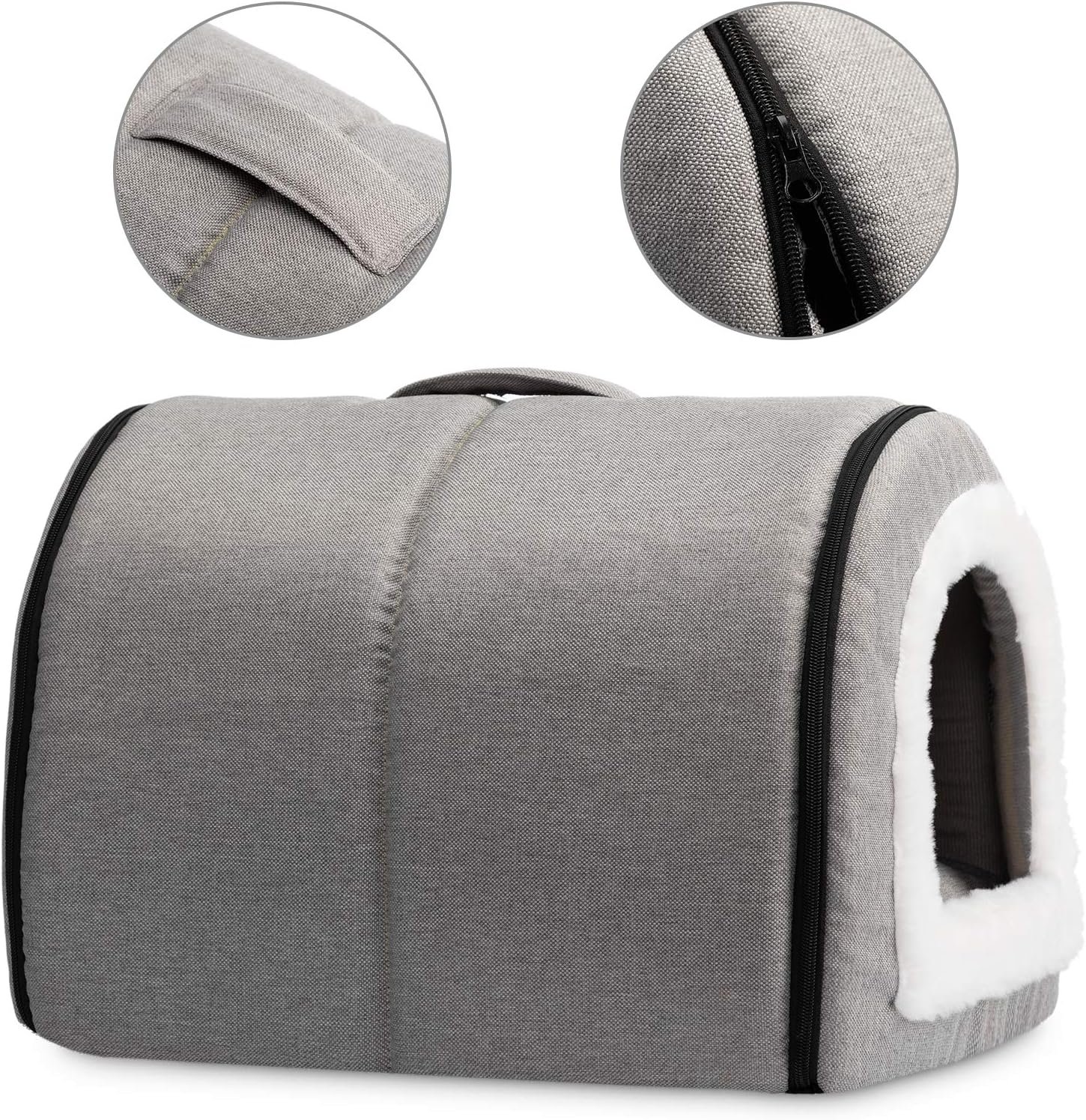 2 in 1 huis en bank. Omsloten huis kan worden gebruikt als een gezellige grot om schuilplaatsen te schaden of in een mooie huisdierenbank te worden gevouwen, kan uw huisdier op de dikke en zachte binnenmat slapen voor maximaal comfort.