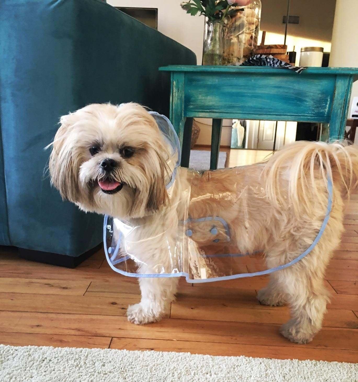 De honden regenjas verkrijgbaar in 3 kleuren en 4 maten. Grootte: S nekomtrek: 12.6 “Borstmokgrens: 18.1″ Achter lengte: 11.4 ”