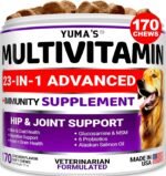 Honden multivitamine kauwbaar met glucosamine – hondenvitamines en supplementen – 170 traktaties – senior & puppy multivitamine voor honden – heup en gewrichtsondersteuning – immuungezondheid, huid, hart, digestie, probiotica