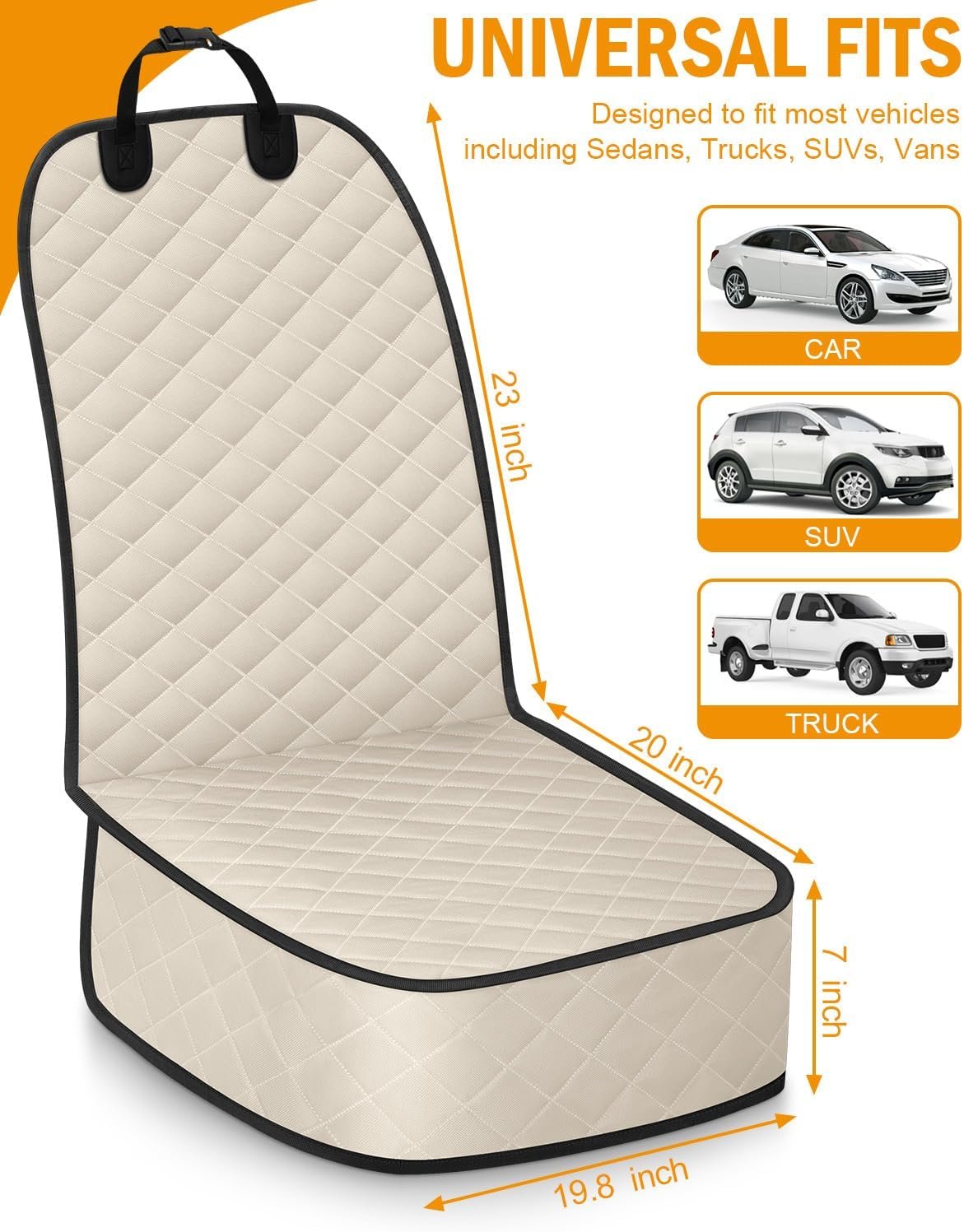 Hondenauto -stoel deksel, huisdieren voorhond autostoeltje dekking voor SUV, vrachtwagens. Waterdichte niet -slip autostoelen voor honden voorstoelen, medium, beige