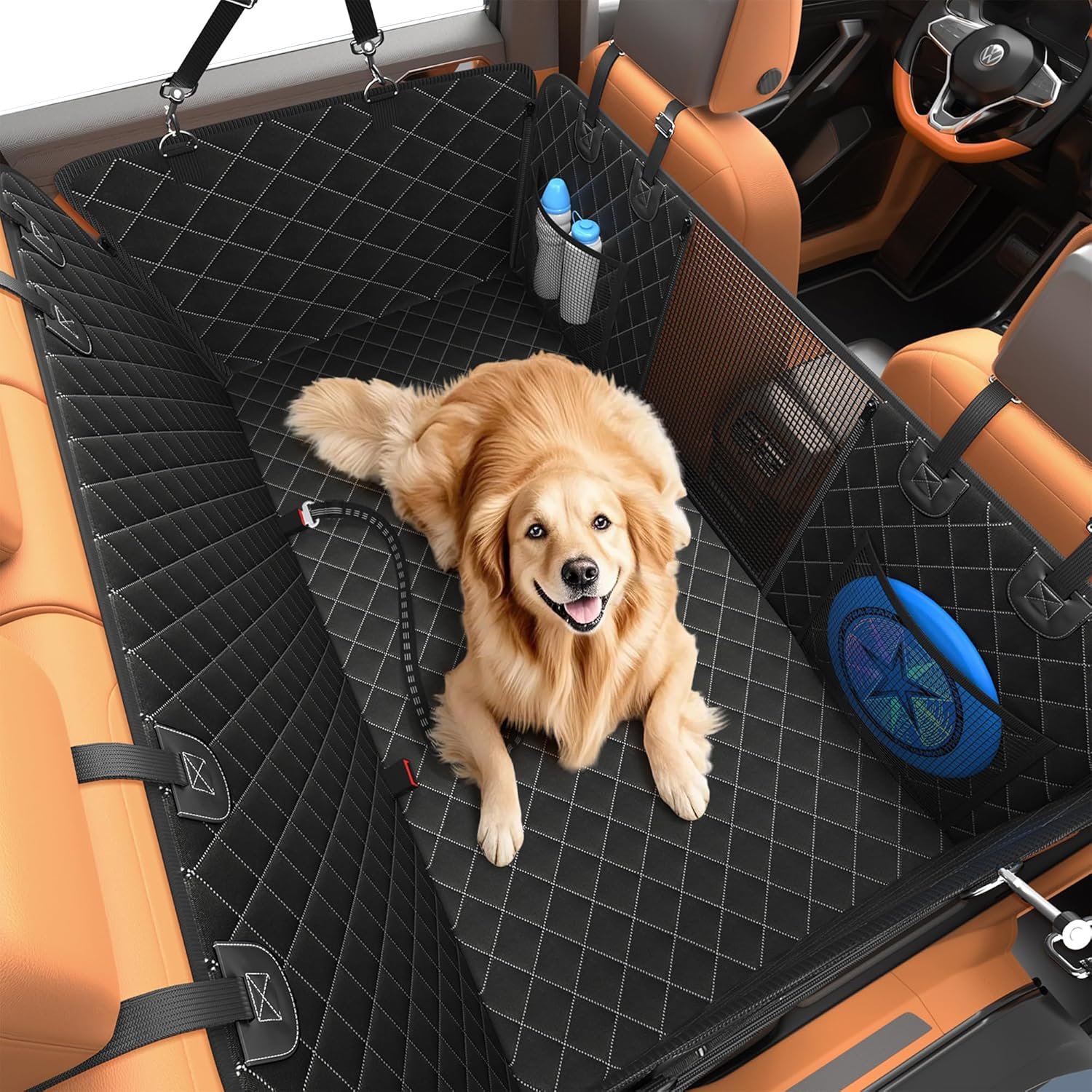 Ademend en opslag: onze deksel van de auto voor auto -huisdieren is ontworpen met een ademende mesh -venster in het midden, dat de luchtcirculatie bevordert, terwijl uw huisdier de omgeving kan observeren om angst te verminderen en uw interactie ermee te vergroten. Opbergzakken worden aan beide zijden van het venster toegevoegd. Je kunt het speelgoed of de snacks van je huisdier erin stoppen voor avonturen op de weg, waardoor je huisdiervriend gelukkiger wordt