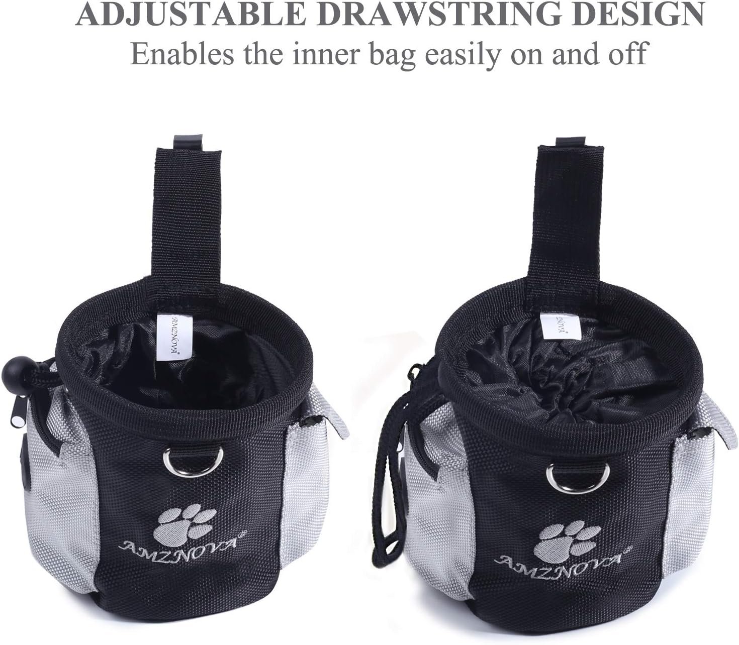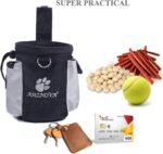 Vrij uw handen: twee manieren om te dragen, verstelbare tailleband (25.2 “~ 47.2”) maakt het traktatiezakje veilig om uw middel, een sterke riemclip maakt deze traktatie -zak gemakkelijk aan uw riem, geen zorgen om af te vallen op buitenactiviteit. En de D-ring is ontworpen om hondenfluit en trainer vast te houden, maakt het mogelijk om buiten de training gemakkelijker te zijn