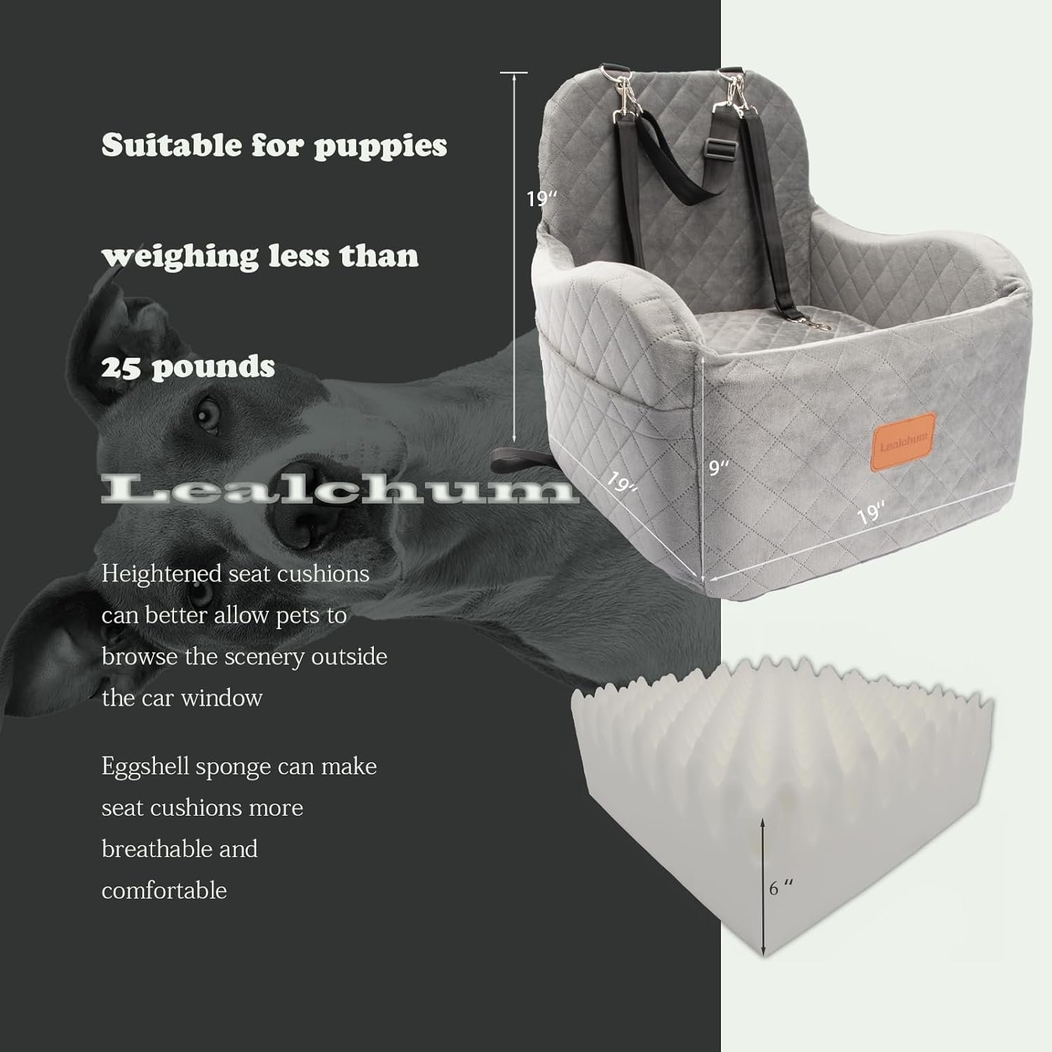 Comfort: de Lealchum Dog Booster Car Seat heeft een ultrahoofdig oppervlaktemateriaal en is gedempt met zacht geheugenschuim, het 15 cm hoge eierschaal sponskussen aan de onderkant stelt huisdieren in staat om comfortabel te genieten