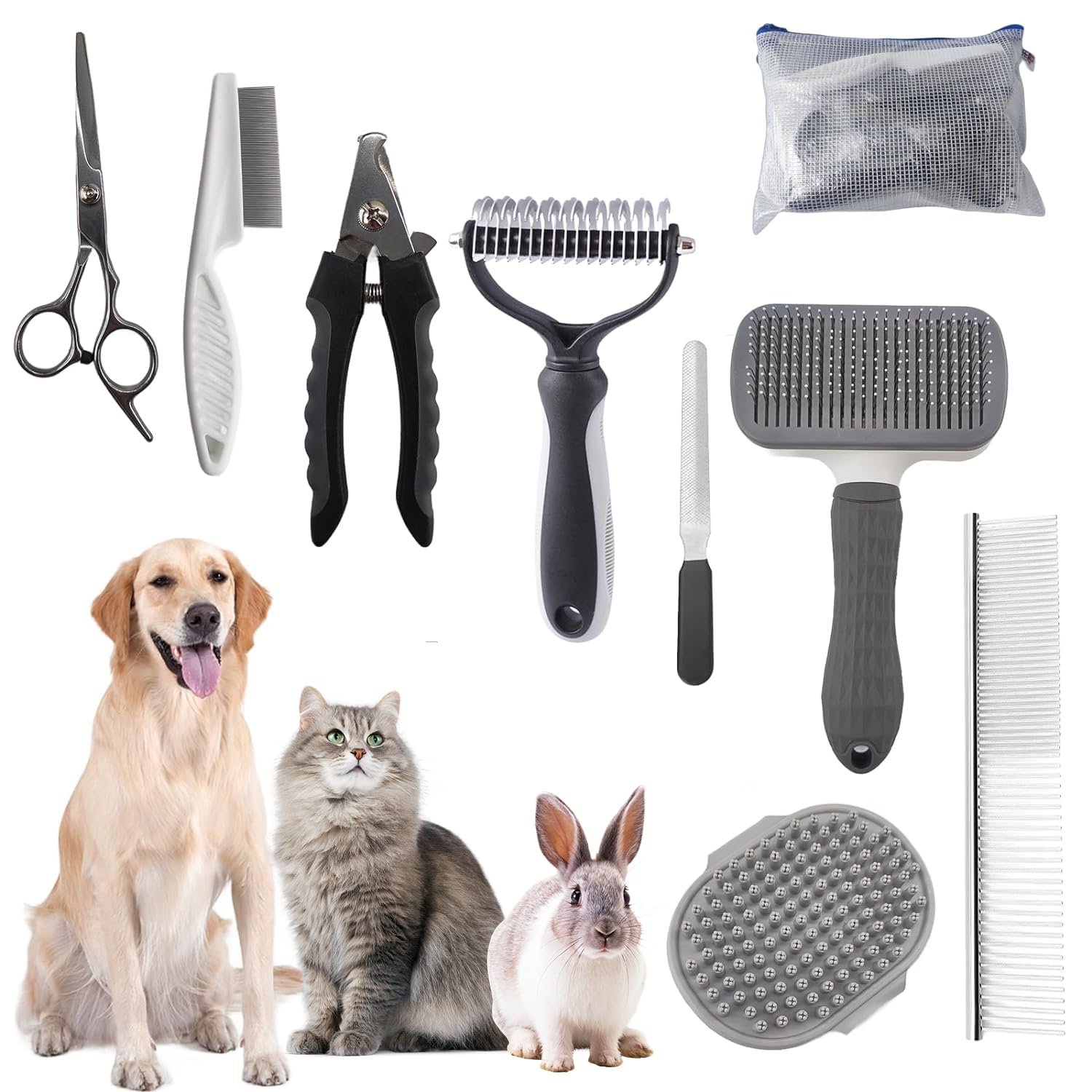 All-in-One 9-delige set : Complete set katten konijnenhondenverzorgingsborstels voor verzorging, alle essentie in één gemakkelijk te vinden, gemakkelijk te dragen tas; omvat alle gereedschappen die nodig zijn voor de dagelijkse zorg van uw huisdier met een zelfreinigende borstel, dubbelzijdige scherpende scherpende scherpende schrijvers, hondenkammen, hondenkamelen, hondenkamelen, hondenkamelen, hondenkamers en rake-rake, hek van de hondenkam, hondenkamelen, honden met een hekje, hekten van de honden. pads; all-round zorg voor uw huisdier; het is een goede keuze voor cadeau geven en persoonlijk gebruik