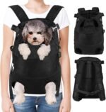 Hondendrager rugzak – benen aan de voorkant – gericht op huisdierdrager rugzak voor kleine middelgrote grote honden, door luchtvaartmaatschappij goedgekeurde handsa – canvas mesh gratis kattenreistas (zwart)