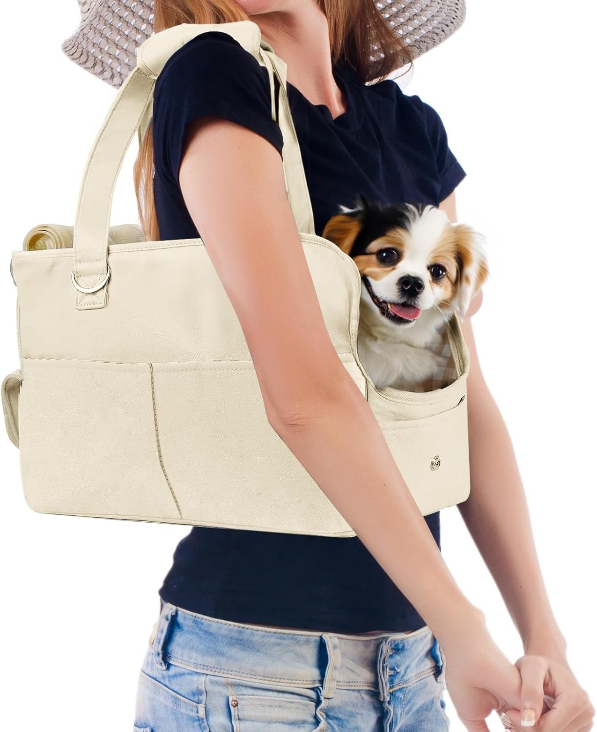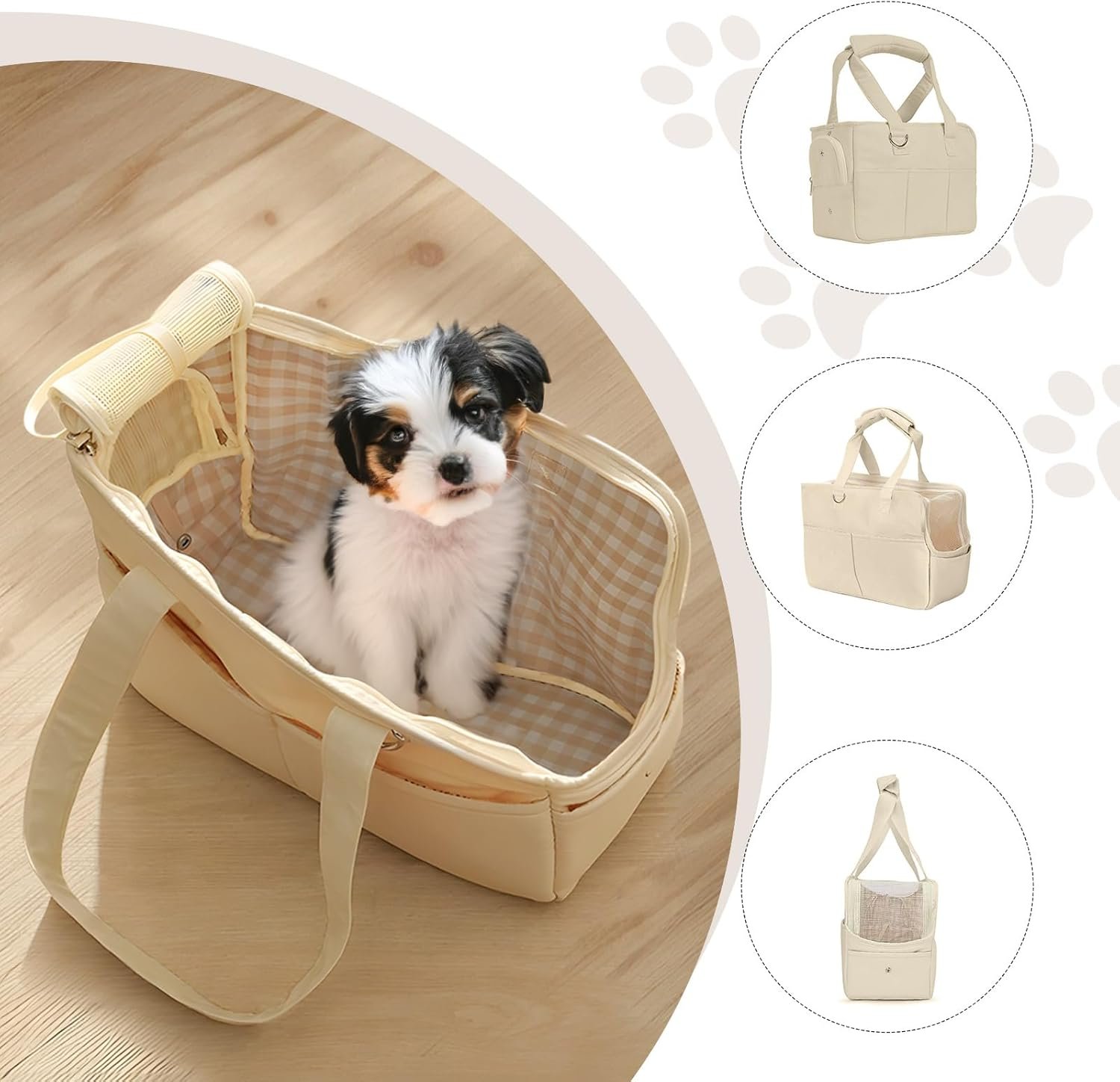 Hondendragers voor kleine honden, hondenbandendrager voor kleine honden, zachtzijdige hondendrager luchtvaartmaatschappij goedgekeurd, hondentaszak met zes zakken, oxford katoenen tas voor puppykitten (klein beige)