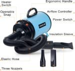 Hondendroger voor verzorging van huisdieren, High Velocity Pet Haardroger met verwarming, verstelbare snelheid, 3 sproeiers en een kam, blauw