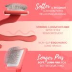 Kalmerende massage -ervaring – Ontworpen met 50% langer en zachtere pennen dan een standaard gladde borstel voor honden en katten, onze huisdierborstel glijdt door dikke jassen zonder haar te trekken of haar te trekken of hun huid te krabben, voor een ontspannende massage.
