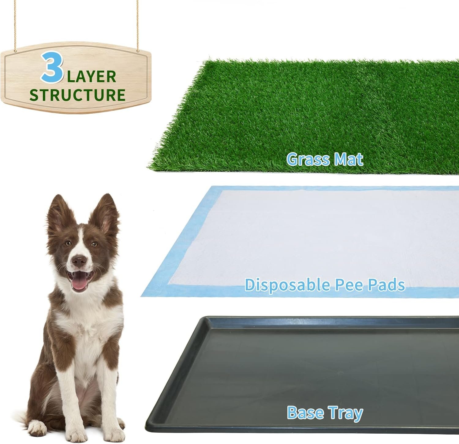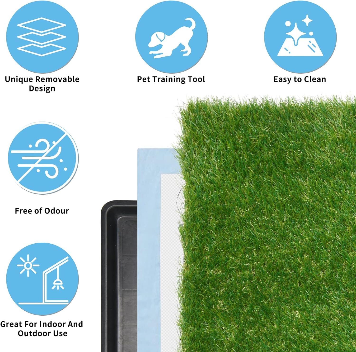 Hondengraskussen met dienblad, 35,5 “x 23,6” binnenhond Posty System 2 PICS Vervanging kunstmatige gras matten-5 foto’s wegwerp puppy pads, voor puppy training appartement, balkon en appartementgebruik