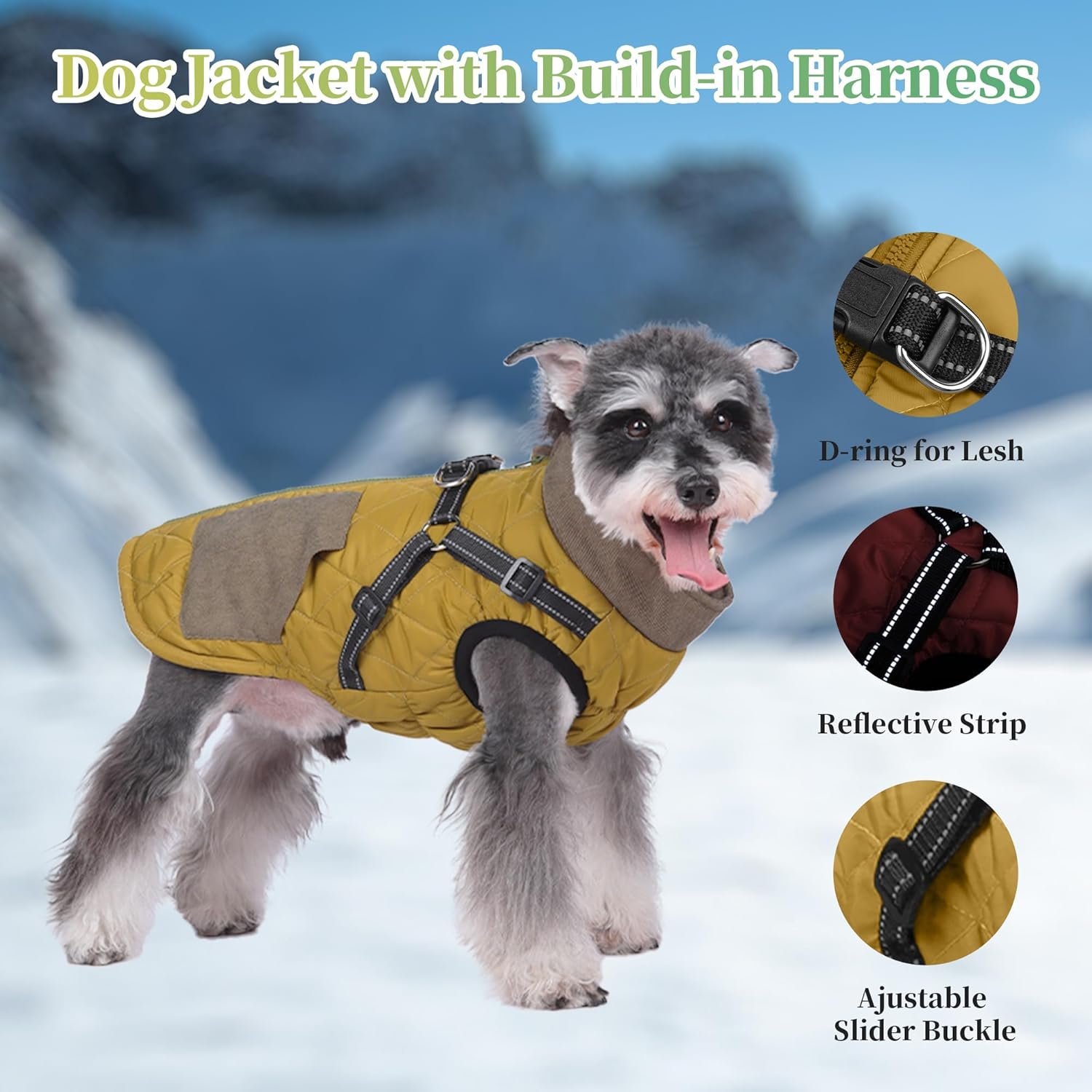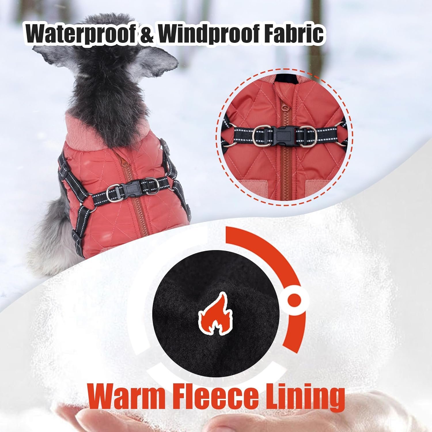 Hondenjas met harnas: deze hondenjas met 2 op 1 harnas, geen extra hondenvestharnas, het is gemaakt van duurzaam nylon singels en met een stevige D-ring. De stiksel is ook zeer stevig, dus u hoeft zich geen zorgen te maken over het scheuren van de kleding vanwege het trekken van de hond.